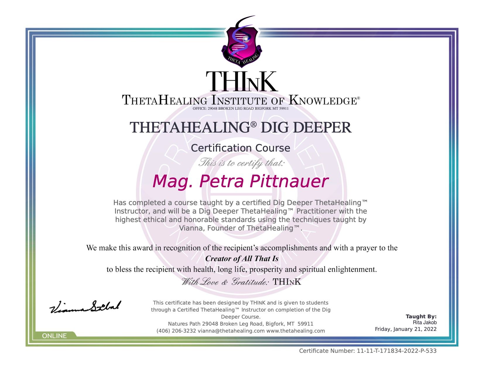 ThetaHealing® Zertifikat "Dig Deeper" 21.1.2022
